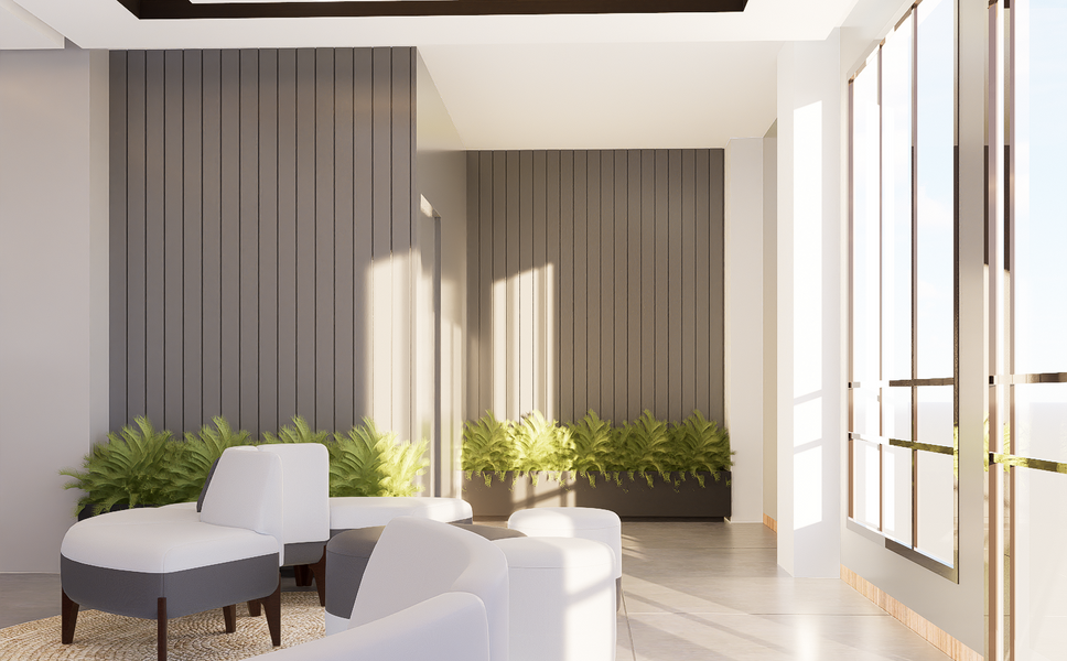 Proyek universitas ini menampilkan eksterior minimalis dengan desain bersih dan modern, yang ditonjolkan oleh warna aksen cokelat yang menambah kehangatan dan karakter pada keseluruhan struktur. Interiornya mempertahankan kesederhanaan ini, dengan menampilkan tekstur granit halus dan elemen kayu alami yang menciptakan suasana yang mengundang dan seimbang. Jalur sirkulasi yang kuat diintegrasikan untuk berfungsi sebagai penunjuk jalan yang intuitif, memastikan kemudahan bergerak di seluruh gedung. Desain ini mengutamakan fungsionalitas dan daya tarik estetika, menawarkan ruang yang efisien dan nyaman bagi mahasiswa dan staf pengajar.