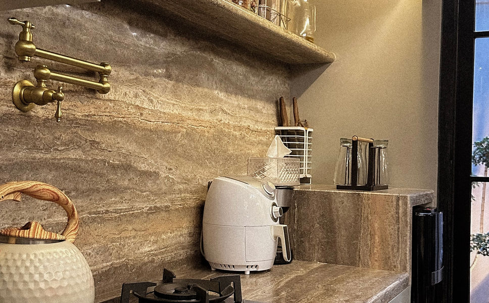 The interior build of this apartment-like house prioritizes high-quality materials and meticulous craftsmanship. Dark wood panels and stone-textured finishes are applied with precision, creating a seamless and durable design. Granite surfaces are chosen for their strength and elegance, while mirrored glass accents are installed to enhance spatial depth and light distribution. Every detail, from the sturdy joinery of custom cabinetry to the refined integration of materials, ensures longevity and functionality, delivering a polished and timeless interior.